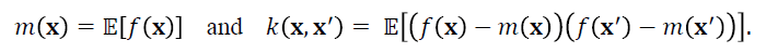 Intuitively, this prior assumption means that, on average, we would expect our findings to look like m(x) and that any deviations from this baseline are correlated in space according to the covariance function k(x,x' ).