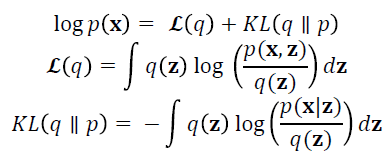 The optimal output is that which maximises ℒ(q), the lower-bound of the marginal likelihood, which is achieved by optimising with respect to q(z). VB fits a prior distribution over the parameters and estimates the hyperparameters; generally one uses broad priors to compensate for not knowing the parameter values. VB cycles between two steps that are analogous to the E and M steps of the ML algorithm and outputs the number of components with mixing values that are different from the prior values (Bishop, 2006).