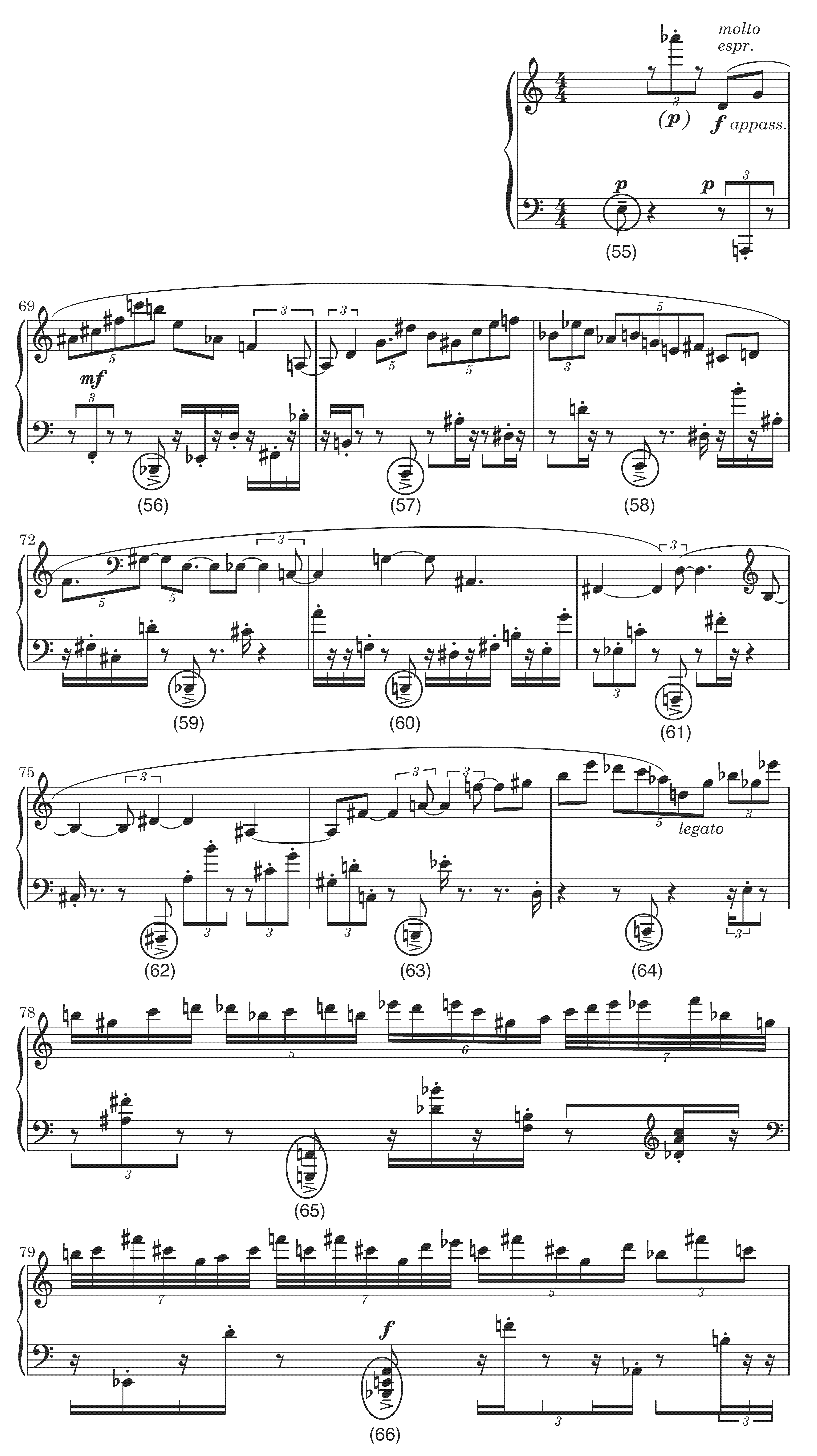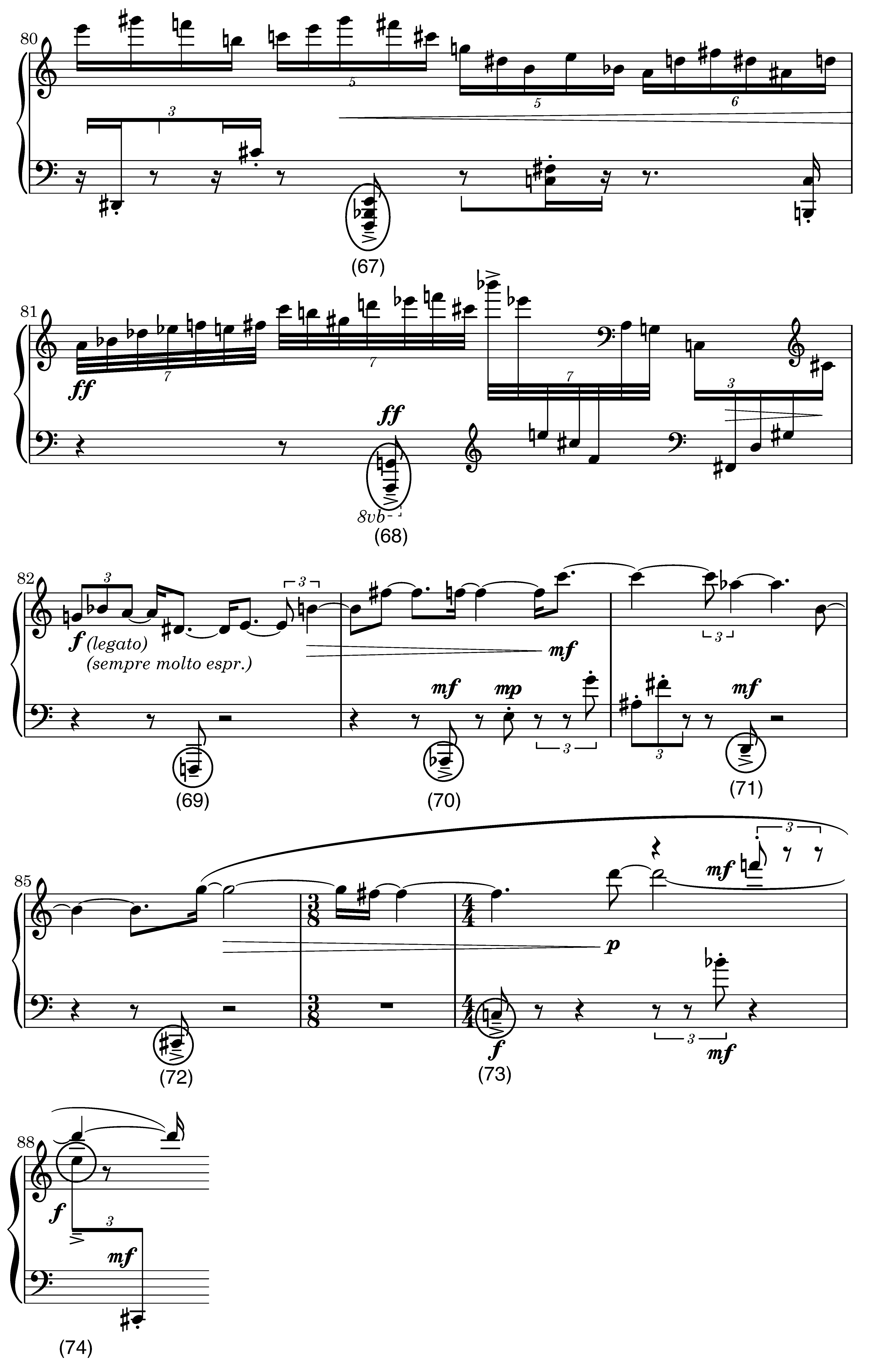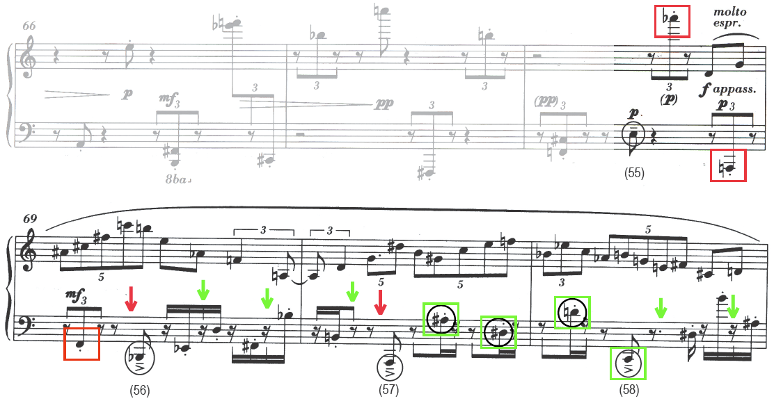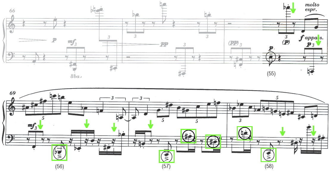 B. Source materials extracted from Elliott Carter's 90+ for piano (1994), mm. 80 to 88, fifth sixteenth note.