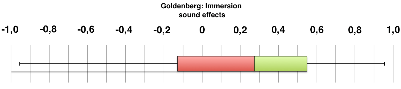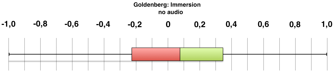 Nearly all participants perceived enhanced levels of immersion when they listened to an audio track. The extent of this enhancement nevertheless depended on the visual information and the type of audio. A mere music track tended to flatten the felt dynamic range of immersion. Sound effects alone and in a mix with music strengthened the effect.