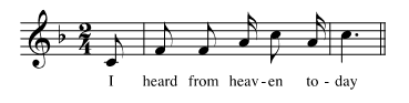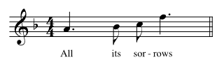 - The second note in Figure 2F carries a change of syllable; the one in Figure 2A does not. This is important, though not decisive; the second note in Figure 2B carries a change of syllable, but seems only very mildly syncopated, if at all. (Patterns in which the second-position note repeats the pitch of the previous note—no example is shown here—also carry little sense of syncopation.) The vast majority of syncopations considered in this article, in all vocal repertoires, have a change of syllable on the syncopated note; I will call these syllabic (as opposed to melismatic) syncopations.