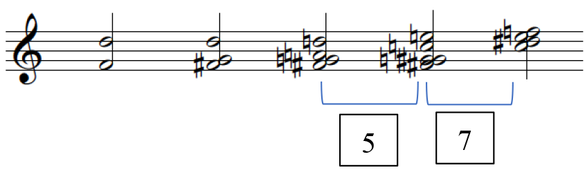 The design of this experiment derives from one component from a "hybrid" theoretical model, which encompasses elements from three different theories – Schenkerian method, neo-Riemannian theory and pitch-class set theory. This model was created to address the harmonic issues posed by post-tonal repertoire, more specifically neoclassical works, as these works contains vestiges of tonality as well as post-tonal elements. 16 Rather than applying the conventional Roman numeral labelling, calculating the total amount of minimal movement between each voice in the chords or more loosely, pitch collections (PCns)will provide a different and concise representation of the harmonies. This will be known as the Aggregated Voice-Leading (AVL) movement. (The AVL differs to voice-leading movement as AVL is the sum of all the voice-leading movement whilst voice-leading movement denotes the individual movements.) This aspect of the model suggests that there are potentially correlations between tension and release to the numerical fluctuation within the harmonic contents. In order to test this empirically, a number of extracts – taken from the model's application – are tested for listeners to rate the amount of tension through the use of a tension rating scale, from 1 to 5.