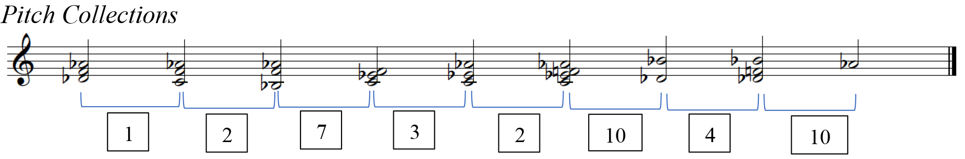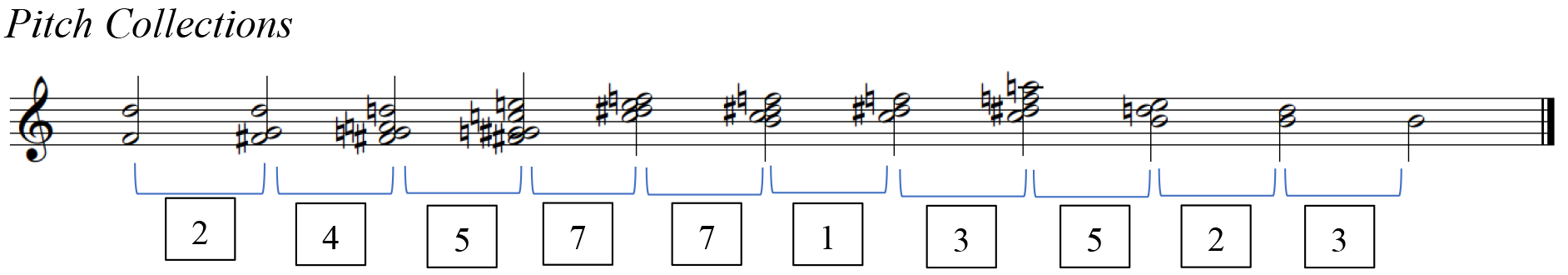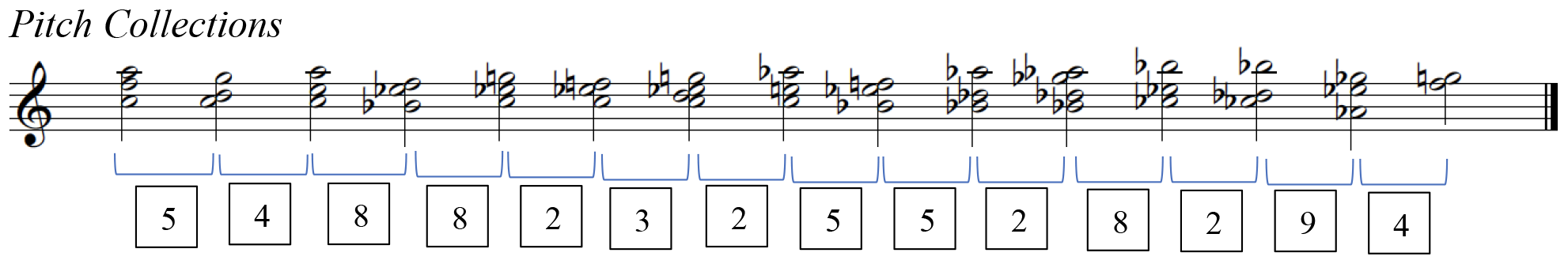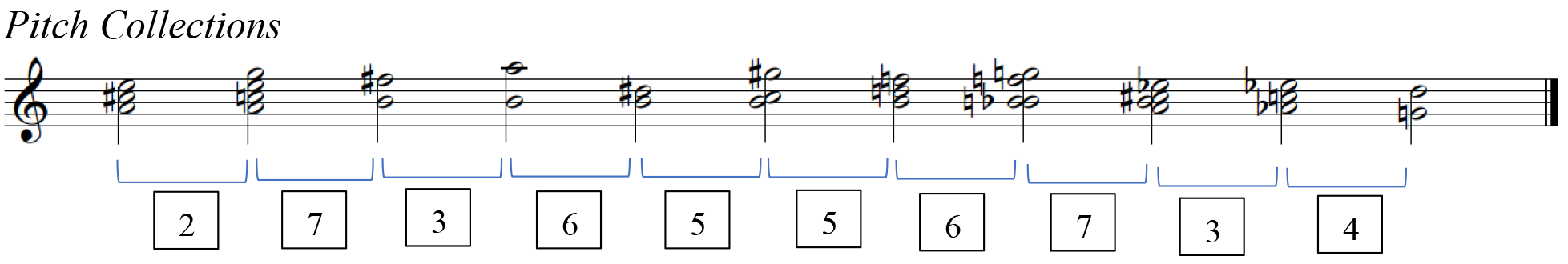 Joseph Straus, "Uniformity, Balance, and Smoothness in Atonal Voice Leading," Music Theory Spectrum 25 (2003): 315. The term pitch collection (PCn) transcends the tonal tradition. In dealing with post-tonal repertoire, this term describes vertical sonorities derived from any given scale.