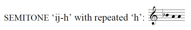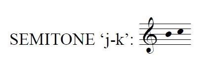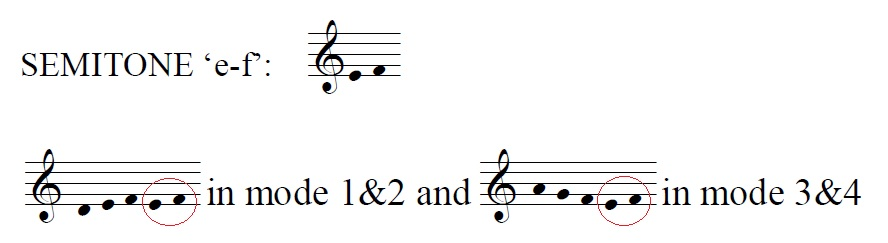 In 37.3% of the occurrences of the semitone 'j-k' in mode 3, it is found at the beginning of a word. Perhaps this impulse can be explained by the fact that the Reciting Tone in mode 3 is c (or 'k' in Volpiano) and invoking the ascending semitone here draws attention to the prominence of the upper note of the pair.