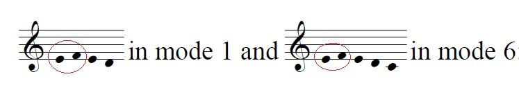 1-ij-h- semitone 29.6% of the time, and in mode 6, this number increases to 39.4%.
