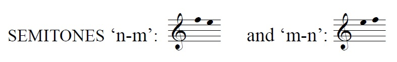 1-m-l-m-n-m- appears 63.5% of the time and 1-m-n-o-n-m- appears 71.6% of the time. The ascending version of this semitone 'm-n', is approached with a zigzag motion of 1-l-m-l-m-n- in mode 7 an impressive 84.7% of the time.