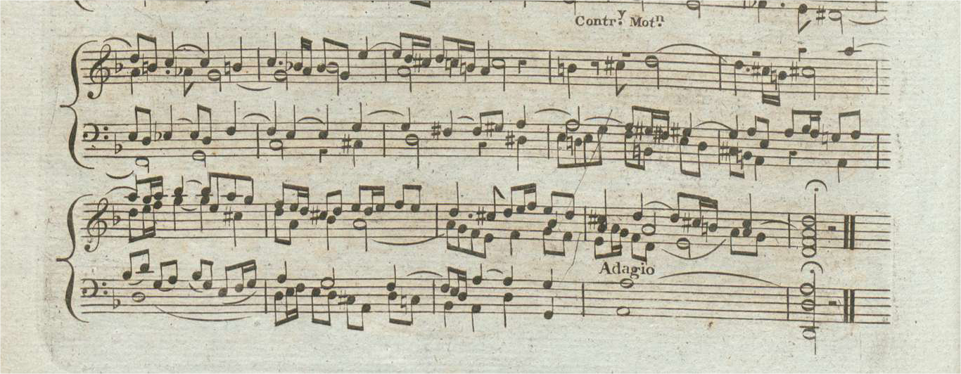 The first version which attempted to make Contrapunctus XIV 'performable' appears to be by Joseph Dietenhoffer, in about 1800 (Diettenhofer, n.d.). The Preface to his Set of Ten Miscellaneous Fugues notes 'no Person ever attempting to finish it; however, a Clause has been added to it at the Place where Bach left of [sic]', and the supplied ending is a simple two-bar perfect cadence marked 'Adagio' (fig.1). The turning point came many years later in 1880, when Gustav Nottebohm (1817-82) found that the three existing subjects could be combined with a missing fourth (Nottebohm, 1880, 1881), and solving this particular contrapunctal puzzle became a challenge any educated musician might attempt. Further impetus to an evolving performing tradition was given by the orchestrations of Wolfgang Graeser (1926) and Roger Vuataz (1937), followed by Gustav Leonhardt's influential book (Leonhardt, 1952) asserting that the work was intended for keyboard (it all fits under two hands) and supported by his 1953 Bach Guild recording on harpsichord. 7