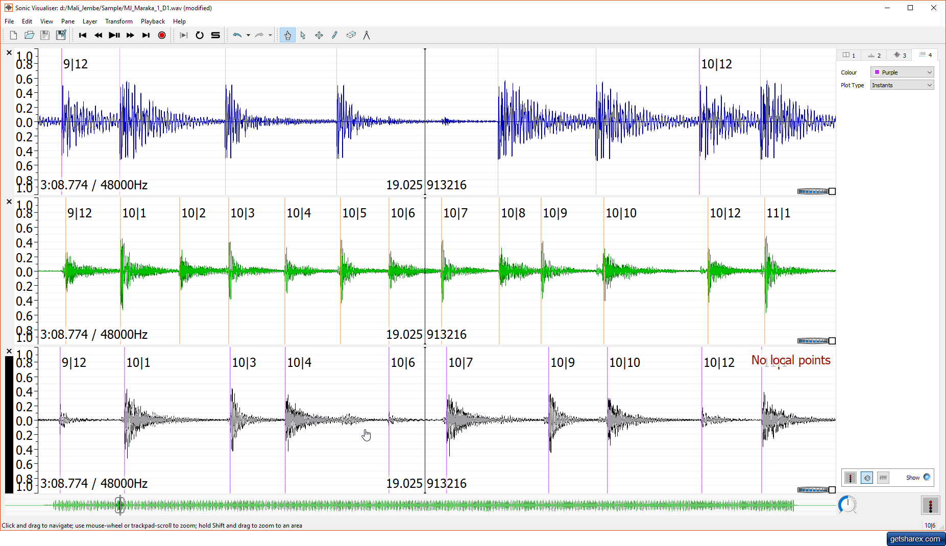 - Open audio file MJ_Maraka_1_D1.wav in Sonic Visualiser.