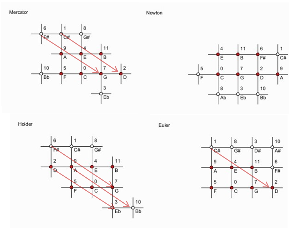 - Euler, Leonhard. (1739). Tentamen novae theoriae musicae. St. Petersburg