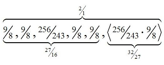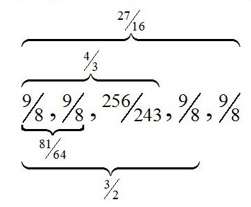 | Pythagorean hexachord | Pythagorean octachords | |
