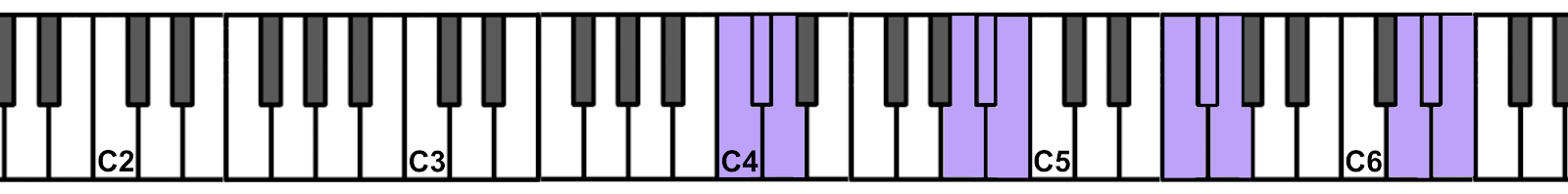 | Middle 2 | B3, C4, C#4 | F5, F#5, G5 |