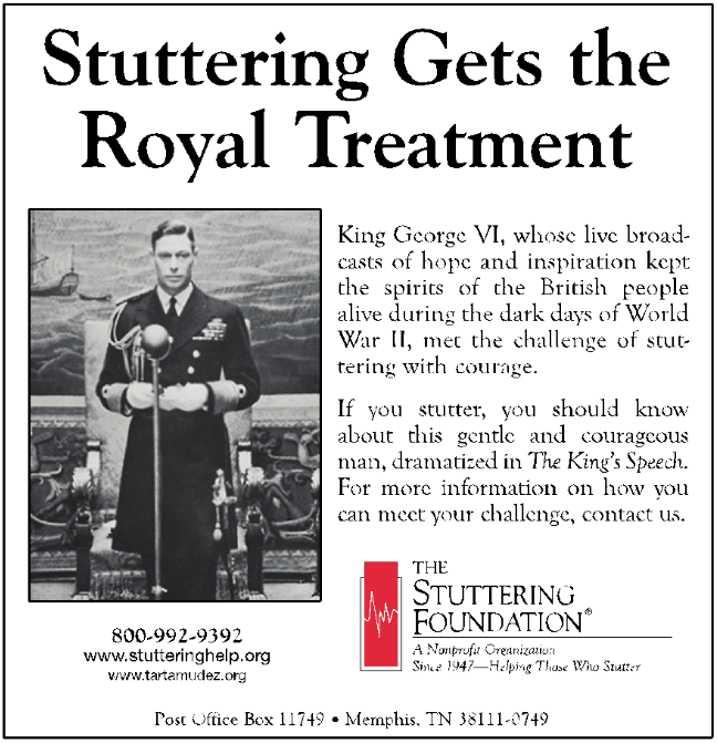From the 2011 Stuttering Foundation promotional ad for The King's Speech, Time Magazine, Feb. 14, 2011.