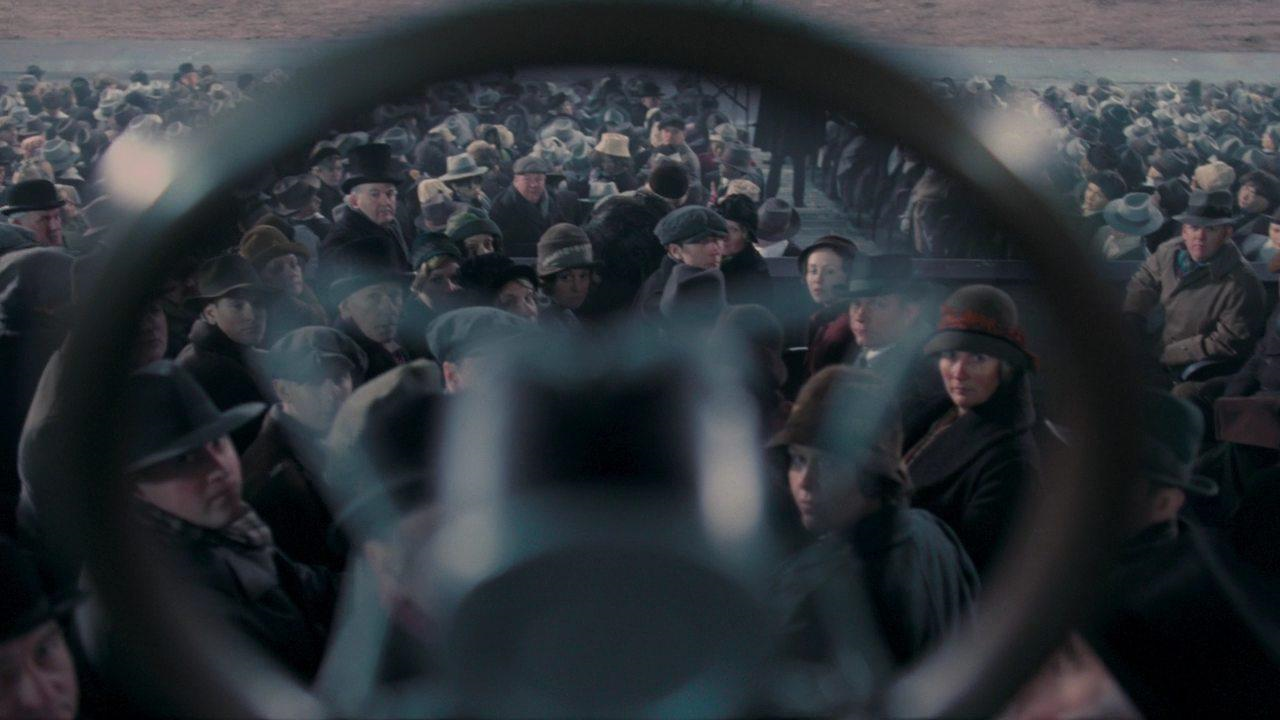 Figure 5. Hooper, The King's Speech (03:50), Anchor Bay Entertainment, 2011. The camera displays Bertie's perspective looking down at the Wembly crowd through the microphone.