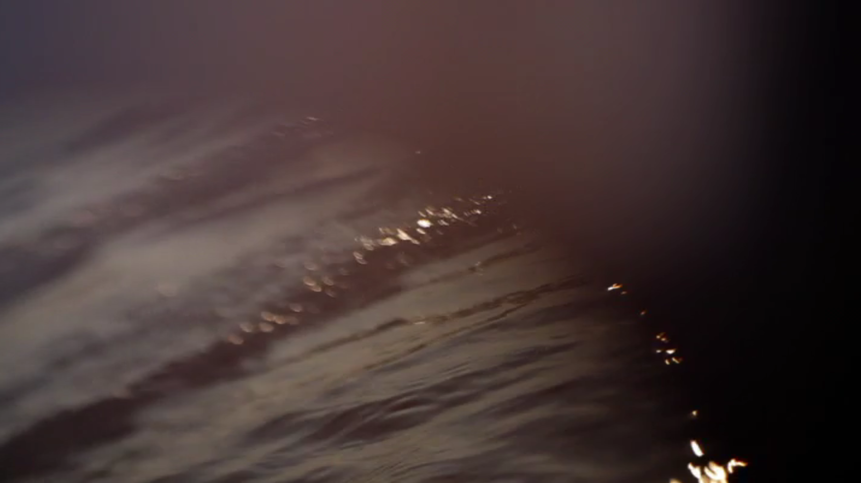 As Ramón Soto-Crespo writes, "mourning the homeland is one way for the diaspora writer [or filmmaker] to maintain a connection with it. This mode of connectivity […] represents less nostalgia than an inherently political style of transcultural association" (342). For Larraín, mourning becomes more than an individual experience, it is a cultural and political recollection of the homeland that links her to her mother and also to fellow exiles. As Soto-Crespo observes, this type of mourning is not "a pathological state that must be overcome [… but a …] culturally normative yet highly political strategy" (371). This strategy plays out through recourse to the aural and tactile techniques already mentioned as characteristic of the blind gaze. As Larraín strolls by the lakeside, the camera plays with water images, filming the surface ripples of the waves and the light reflecting off of them. The lens fluidly shifts in and out of focus and the images embrace an indeterminacy of contours, as solid objects disappear into a tenuous light and shadow play. The camera position remains always uncertain, above, below, in the water, it is difficult to discern its exact location. The very first image is of waves (in focus) and a face in the extreme foreground (out of focus), presumably the filmmaker's as she stares out to the lake. The water images remind us, not only of Lake Ontario but also of the sea, the Pacific Ocean and the shores of her native Chile. Fluid images connect Larraín affectively to her mother and motherland, but also separate her, making the distance materially palpable (Fig. 3). Just like the handwritten note in the film's dedication is a material link to mother and homeland, water images and sounds also build affective layers and introduce texture for the viewer.
