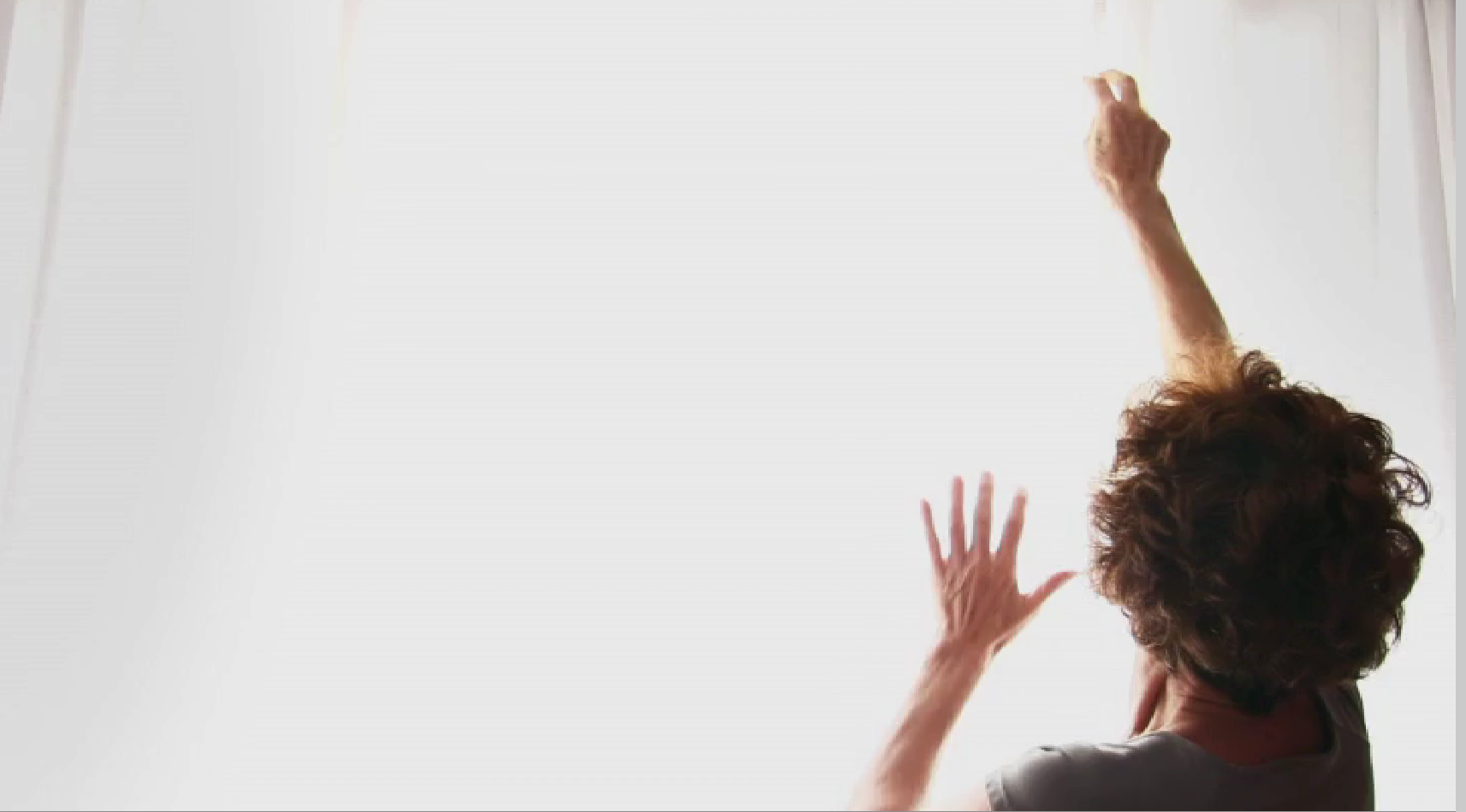 Larraín is aware of the inherent contradiction of the medium and the difficulties of representing the tactile through the visual. She does turn to the auratic for assistance. In the scene with her granddaughters, she complements the intense haptic visuality of her images with a lavishness of sound, including music, the pitter-patter of feet and the rustling of clothes, the joyous screams of her grandchildren, her breathing, and of course her intimate voice over, "We can know people not only through our eyes … we can know them through touch. Our hands … through sound… in terms of knowing people, our whole body can be an eye." In effect, she turns the screen itself into a window, a two-directional surface that is meant to enable communication, rather than obstruction or division. At times it seems as if she would intermingle the onscreen diegesis and the very cinematic material it is composed of (HD video) with our flesh and blood world. Puncturing through the gap is the vulnerability of the characters as they stare at the camera directly or touch the screen, signs of the ease with which the transparent barrier might almost be broken, and the ontological divide between the film's reality and ours dissolved. Almost.