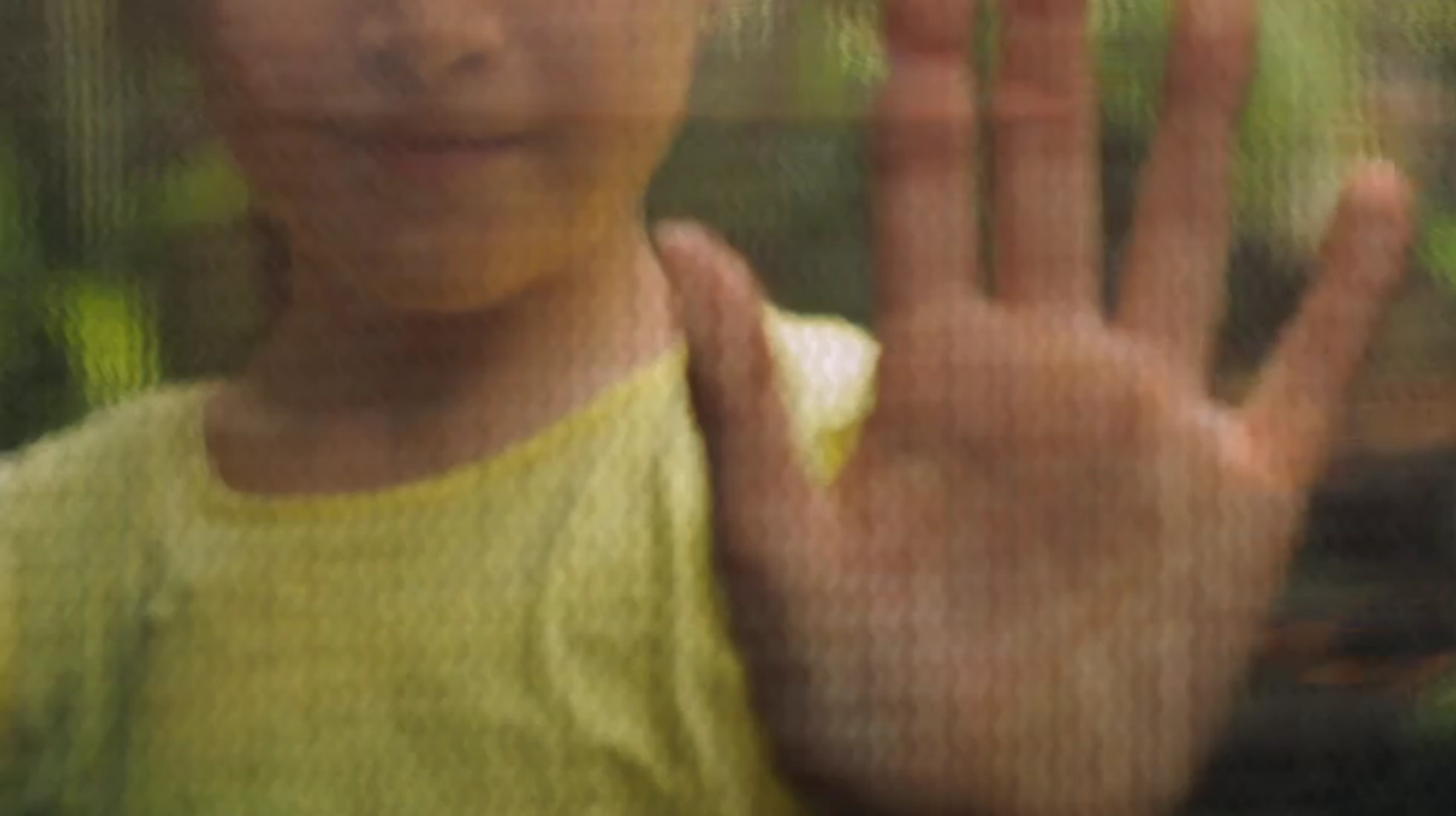 Fig. 7 Shadow Girl The Haptic Instance of Touching the Screen – Close up image of a child's hand against the screen, the blurry image of the child behind.