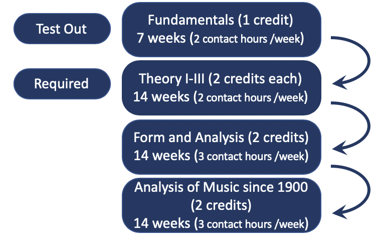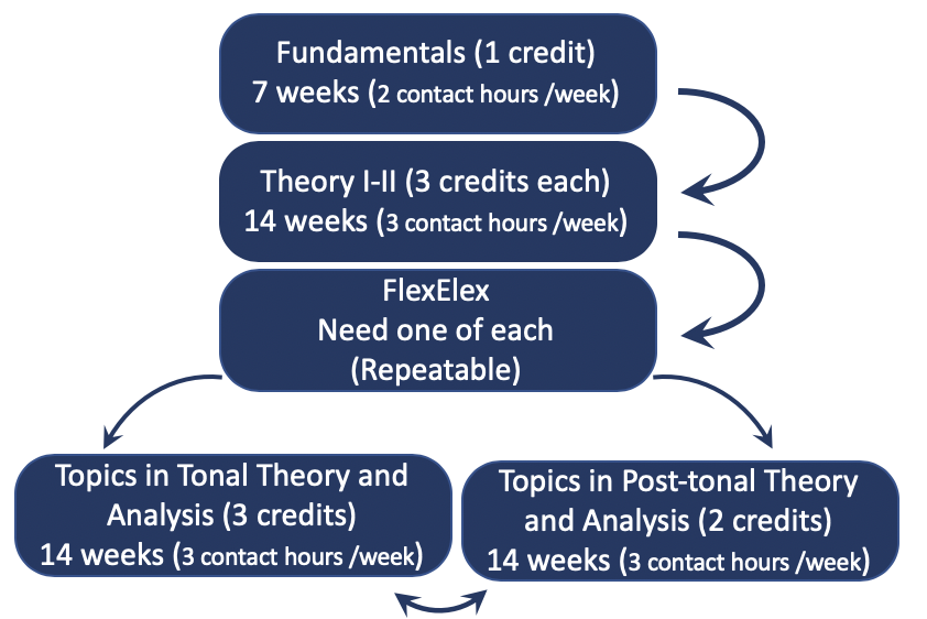 *Students can choose to take Topics in Tonal Theory and Analysis (3) and Topics in Post-tonal Theory and Analysis (2) in any order, anytime after Theory II