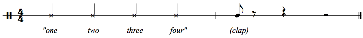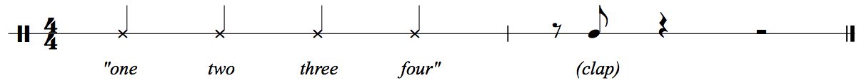 Even the simplest musical stimulus—a lone hand-clap—inevitably acquires meaning through the structures assumed by a listener. The difference between Figures 4a and 4b arises not from the stimulus itself (the "music") but from the existence of conceptual categories—an implicit theory of meter. In this case, the listener infers "beat" versus "off-beat" through a real-time application of those categories—which is to say, through implicit musical analysis. As Goethe insisted, "With every intent glance at the world, we theorize." (Goethe 1810, Vorwort; thus quoted, prominently, in Schenker [1935] 2001, p. 3)
