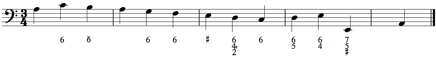 (a) Figured bass for Handel Sonata op. 1 no. 7, iii, mm. 1-5.