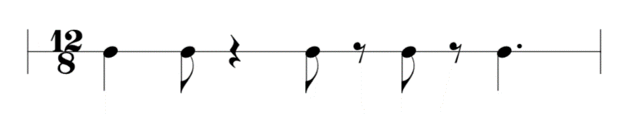 After we have achieved a degree of competence with this combination, it's time to pause for a brief analytic interlude to assess what we've done so far, and for some terminology. The five-onset asymmetrical sequence that we clapped and then sang is a version of son clave, named for a constellation of musical practices stemming from Cuba known as son. It is an example of a timeline, a consistently repeating rhythmic gesture that plays at least two important roles in its native contexts: as an orientation tool (helping participants find their place in sometimes quite complex multidimensional spaces), and as a legislative force (guiding improvisational possibilities within those spaces). Specifically, it is the version of son clave that scans along a twelve-pulse cycle, as represented by the 12/8 time signature in the notation so far (with eighth notes representing pulses). This particular timeline has special significance: A.M. Jones (1959) refers to it as the "African 'signature tune'"; Bertram Lehmann (2002) calls it the "syntactic background" and demonstrates how it underlies many other timeline sequences.