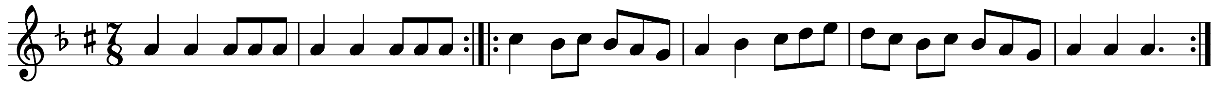 When originally composed, the above melody would have been conceived to fit over the drum-stroke pattern of Aksak; note that the beaming for the final three eighth-note beats of each measure reflects this. The term Aksak refers both to this specific usûl and also generally to any usûl that asymmetrically combines beat structures of 2 and 3. Not all usûl-s which behave this way feature the word aksak in their names, but they are all to be understood as aksak in principle (Brăiloiu 1984).